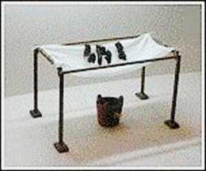 ????茶模下置檐布(檐是褶文很細,表面光滑的綢布)檐下放石承(受臺),承一半埋入土中,使模固定而不滑動。茶泥傾入模后須加以拍擊,使其結(jié)構(gòu)緊密堅實不留有縫隙,等茶完全凝固,拉起檐布即可輕易取出,然后更換下一批凝固的團茶,水份并未干燥,先置莊莉(竹簍)上透干。