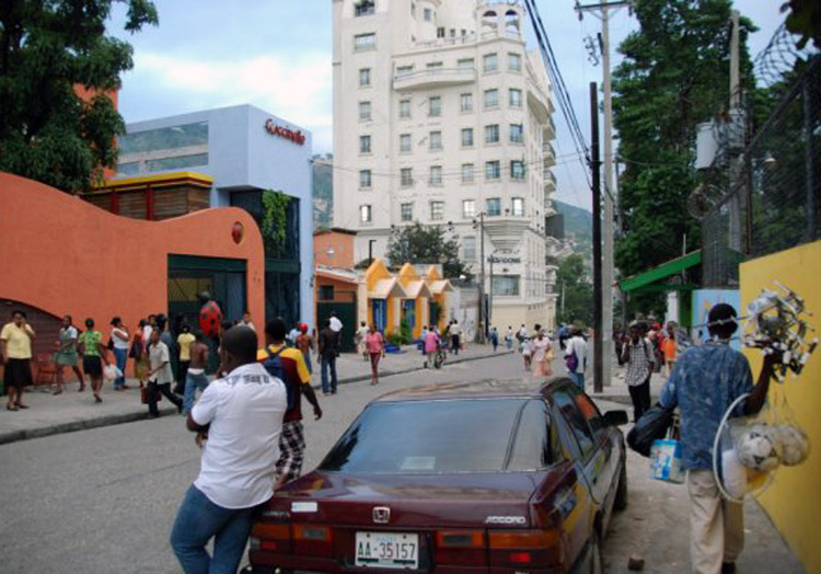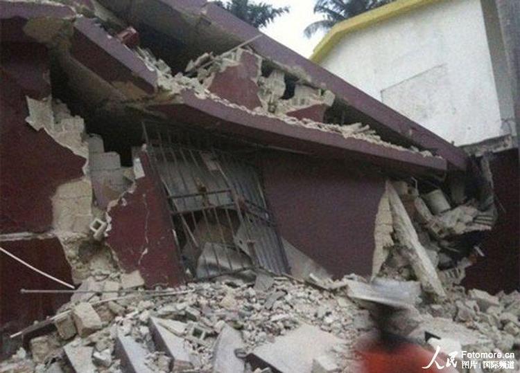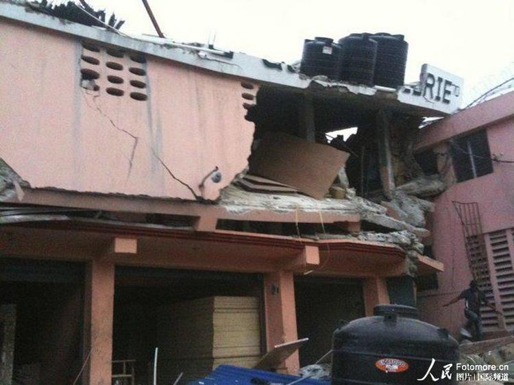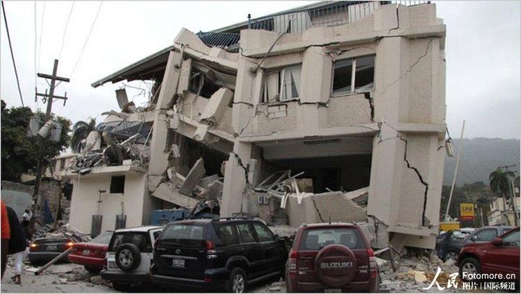 1月12日,在海地首都太子港,建筑物在地震中受損嚴(yán)重。新華社發(fā)