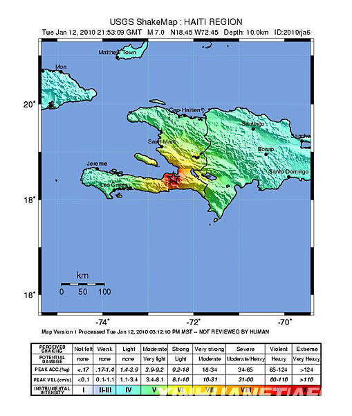 英國地質研究專家將此次海地地震放在高烈度地震的榜首。專家說,這次地震產生的能量相當于50萬噸TNT炸藥同時爆炸,可以說是120年以來襲擊整個加勒比地區最強大的力量。