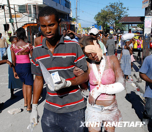 1月13日,在發(fā)生地震的海地首都太子港,一名女子獲救后得到幫助。加勒比島國海地當?shù)貢r間12日下午發(fā)生里氏7.3級強烈地震,造成首都太子港大量房屋受損或倒塌。當?shù)厝耸糠Q地震恐致數(shù)千人死亡,震后救援工作現(xiàn)已展開。新華社/法新