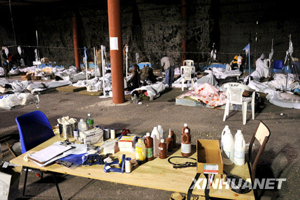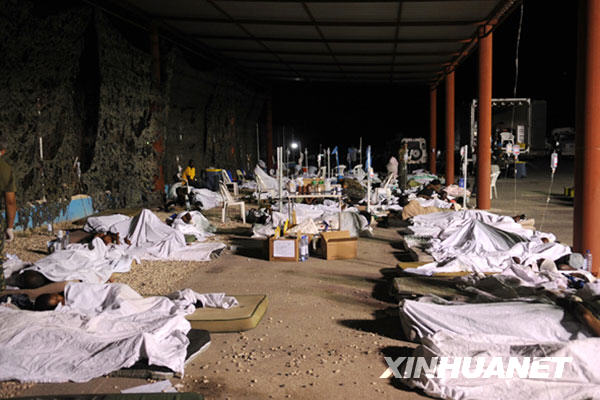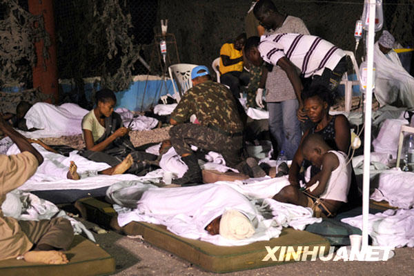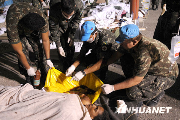 1月13日,巴西維和部隊(duì)在其駐海地太子港總部搭設(shè)臨時(shí)救助中心,救助地震災(zāi)民。新華社/巴西通訊社