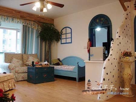 超喜歡下面這款愛家,簡直是小孩子最愛的童話王國嘛,處處精致處處卡通。讓我都流連忘返了!廳系為藍與白的地中海風格,插入少許田園的元素;主臥系為香艷的東南亞風格;間雜吸收其他風格的一些精華元素,如榻榻米。