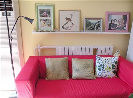 柔粉色的沙發很干凈,別致的裝飾畫點綴其中。