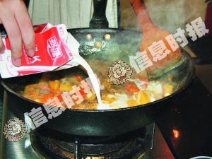 6、咖喱汁收汁時(shí),加入適量的椰奶,蓋上鍋蓋燜煮一會。