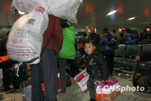 剛滿一歲的亮亮趴在布滿水蒸氣的車窗口,感受著春運的氣息。攝影:黎湛均