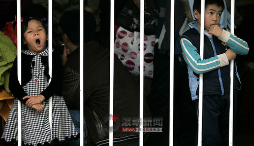 準備進站的小朋友打起了哈欠。攝影:瀟湘晨報/華劍