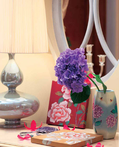 休息區的桌子上還是整潔干凈為宜,任意擺放幾本經常翻閱的書,一只水杯就好。花瓶內插上少許鮮花,溫馨 的感覺一下子涌上來。兩枝大的繡球,或者一小束自由發散的鮮花,都是非常適合的。