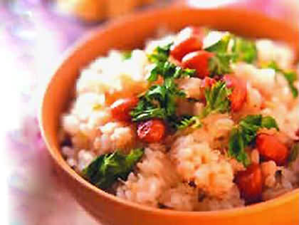 (3)放入電飯鍋中煮熟,開關跳起后,再燜10分鐘,將鍋蓋打開,拌入芹菜末,再燜5分鐘,最后用飯匙輕輕拌勻即可。 |
