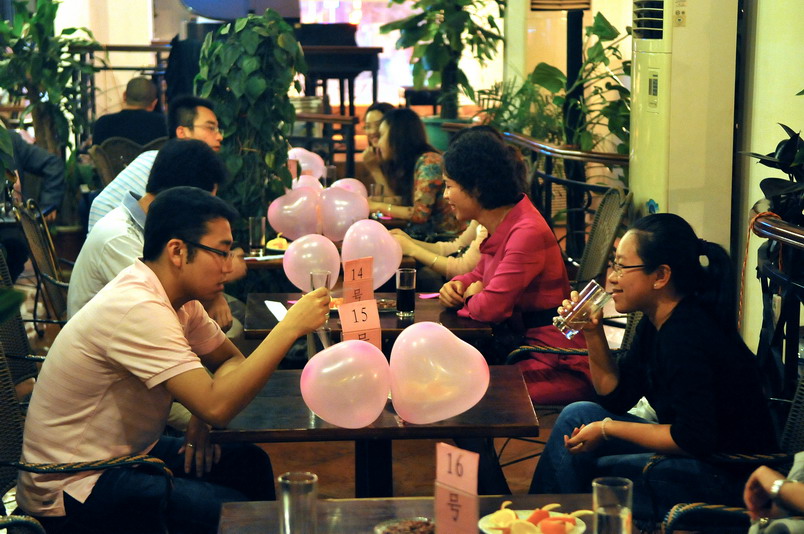 活動采取男生女生搭配自由交流的形式進行,每隔一段時間就交換交流對象。