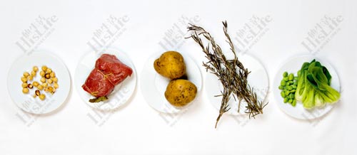 ????1. 牛仔脊肉1000克、小牛碎肉50克、洋蔥50克、蒜10克、黃油15克