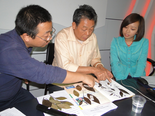 郭維深展示茶葉標(biāo)本? 韋世寧 攝