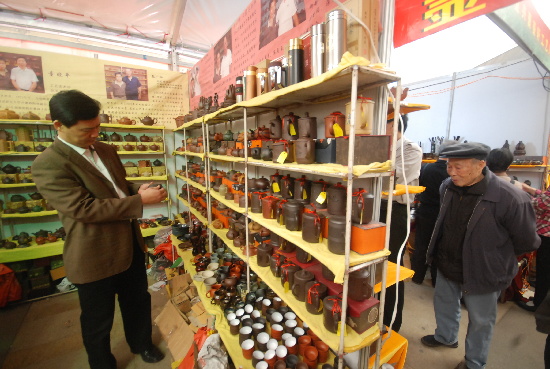 ? 泡一壺好茶,不僅需要好茶、好水,還需要好茶具,紫砂壺的熱賣就很能說明茶友對茶具的重視。300多元的一個茶壺,幾十元一個小茶杯,只要是為了一壺好茶,茶友們都愿意花上這筆錢。在宜興紫砂壺的展區上,一個個做工精美的紫砂壺猶如一件件藝術品,吸引著茶友的目光。在外觀的設計上,無論是優美的詩詞、意境深遠的山水畫、婀娜多姿的仕女圖,都在壺身上栩栩如生地展示著其神韻;在形狀上,有的像籃球,有的如木塊、有的酷似寶塔……紛繁的品種讓茶友在選購的過程中品味著中國的文化。