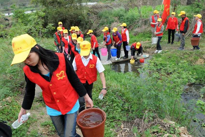 3月29日,廣西柳州市鹿寨縣的青年志愿者運(yùn)水準(zhǔn)備灌溉土地。新華社發(fā)(賴柳生 攝)