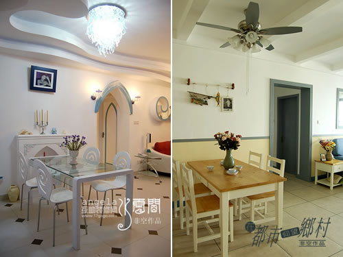 餐廳:依然同樣格局,但家具材質和裝飾品的不同,營造不同的家居氛圍。