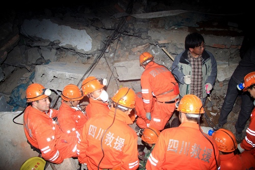 立參謀氣喘吁吁地向記者介紹了現場情況:目前救援的這個小區是一棟位于縣城中心附近的4層居民樓,樓房坍塌嚴重,有不少群眾被壓在了地下,呼救聲音此起彼伏,現場十分混亂。在他面前,武警官兵們和部分外來打工人員、當地群眾一起正在搜救被樓房立柱困住的幾名女孩,情況很危急,尚不清楚還有多少群眾被壓在了地下。遠處還有一些群眾正在搶救物資,現場人山人海,都難以判斷到底有多少群眾參與了救援。