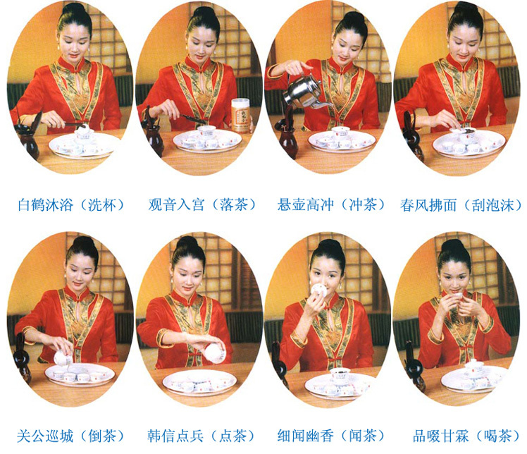 ????1.特色:針對(duì)較粗制的茶,使價(jià)格不高的一般茶葉能泡出不凡的風(fēng)味。講究一氣呵成,在泡茶過程中不允許說話,盡量避免干擾,使精、氣、神三者達(dá)到統(tǒng)一的境界。對(duì)于茶具的選用,動(dòng)作,時(shí)間以及茶湯的變化都有極高的要求。(類似于日本茶道,只比其遜于對(duì)器具的選用)