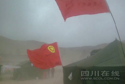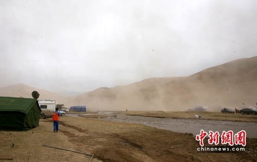 中新網青海玉樹電 (記者劉忠俊) 19日,青海玉樹地震災區的天氣可以說是一天多變,大風狂暴吹起地上塵土,天地一片昏暗。不到幾分鐘又下小雨,過后又出大太陽。大風造成災民以及救援隊的一些帳篷被吹倒,一醫療點的兩帳篷被大風吹到20米外,造成帳篷里的兩位醫生和一名記者受傷,其中記者傷得不輕。
