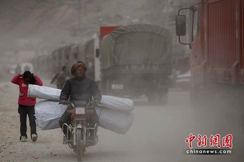據悉,近幾天青海玉樹地震災區氣溫將下降,夜間還將下雪,三條通往玉樹災區的道路已出現降雪,救災物資運輸將受受到一定影響,交通部門提醒前往災區的司機們翻越高山時路滑注意安全。