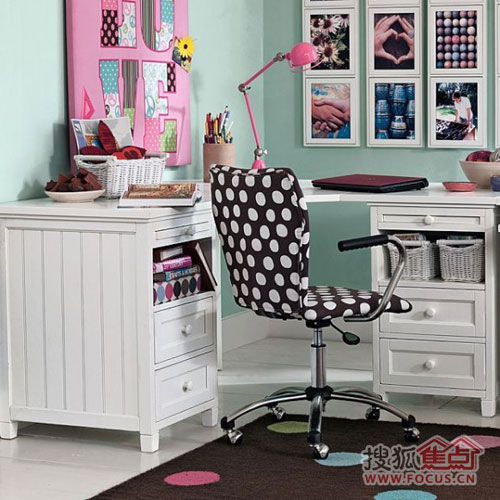 純白色的寫字桌,可愛的布藝貼畫很漂亮!