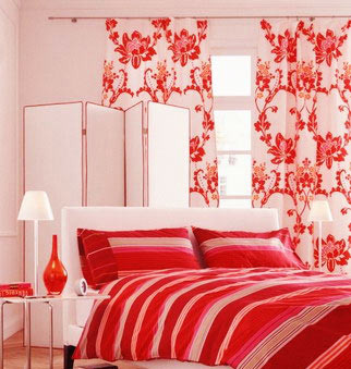 建議選擇紅色在軟裝飾上使用,比如窗簾、床品,靠包等,而用淡淡的米色或清新的白色搭配,可以使人神清氣爽,更能突出紅色的喜慶氣氛。