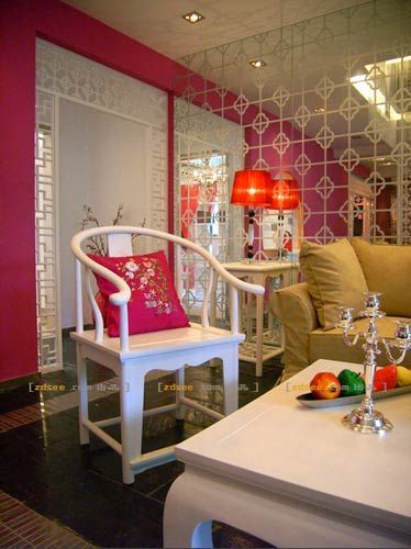 粉色的墻壁、黃色的沙發、紅色的幔帳,穿插著古色古香的中式家具和絲織品,讓人一見傾心。