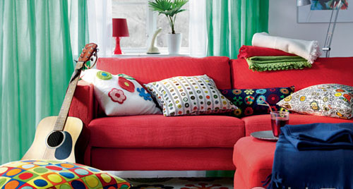 有時空間格局難免有不如意之處,而當硬性技術手段無法解決時,不妨選用顏色亮麗的布藝家具,并搭配以醒目圖案的靠包、窗簾、地毯等,來人為地營造空間的氛圍,使人為溫馨的布置所吸引,從而忽略房間的不足之處。