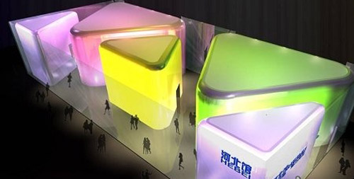 ????透明玻璃環繞四周,內部為五個互動幾何體,展館的設計靈感來源于河北的特色藝術——內畫。五個幾何體如同相互聯系的基因鏈,形成一個完整的“生命有機體”,象征著河北和北京在山川河流、文明傳承等方面“兩位一體”的關系。館內以中國哲學的“融合共生”思想為“經線”,以京畿之地的“時間概念”為“緯線”,追溯京畿之地的歷史淵源,展示河北的文化精神與審美情調,展望環渤海經濟區的未來。