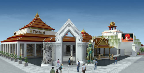 ????展館設(shè)計突出泰國視角和泰式風(fēng)格,以紅色和金色為主色調(diào),融入泰國傳統(tǒng)建筑、藝術(shù)以及泰式生活方式中的經(jīng)典元素。展覽和表演的核心內(nèi)容可歸納為“和諧”與“融合”,寓意生活在暹羅大地上各種族、各宗教的泰國人和諧地凝聚為一體,表現(xiàn)泰國人文生活與大自然和環(huán)境相融合,同時與國際經(jīng)濟和科技發(fā)展接軌。