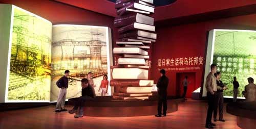 ????“昨日之夢”展區,用近五米高的巨型屏幕播放科幻影片,訴說未來夢想。“理想與實踐”展區,以互動虛擬書的形式呈現人類歷史上對未來城市的描述,以九座雕塑闡述更美好城市的實踐,表現建設中的城市。“多種可能性”展區內有一個36米高的宏大空間,用來播放一部動畫電影,并在周圍場景中呈現出“生態之城”、“智慧之城”、“水之城”、“太空之城”、“能源之城”五個夢幻般的未來城市街景,表達未來的城市發展和人類的城市生活的各種可能性。“未來正在實現”展區,運用多媒體加模型的展示方式,通過“智慧家居、健康社區、低碳城市、和諧環境”四個主題,展示未來科技的發展趨勢。