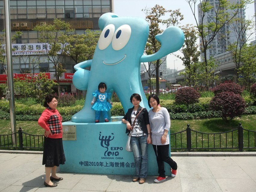 上海世博園吉祥物海寶寶的塑像前,留下記者的倩影。