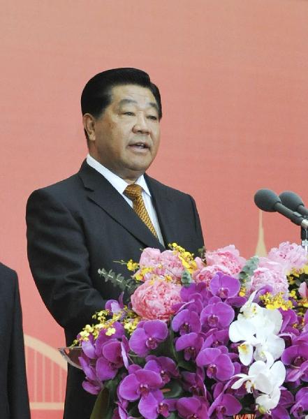 ??? 5月1日,中共中央政治局常委、全國政協主席賈慶林出席中國2010年上海世界博覽會開園儀式,并同國際展覽局主席藍峰一道為上海世博會開園。這是賈慶林在開園儀式上致辭。新華社記者 李學仁 攝