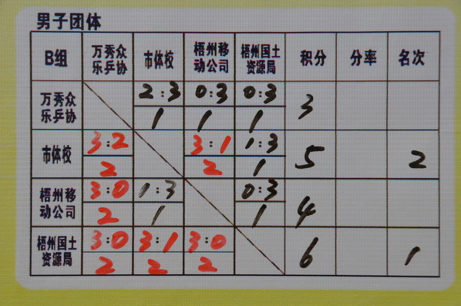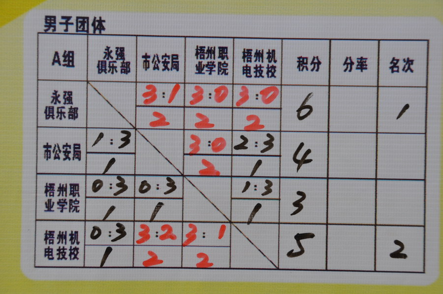【8日乒乓球】 成績(jī)表