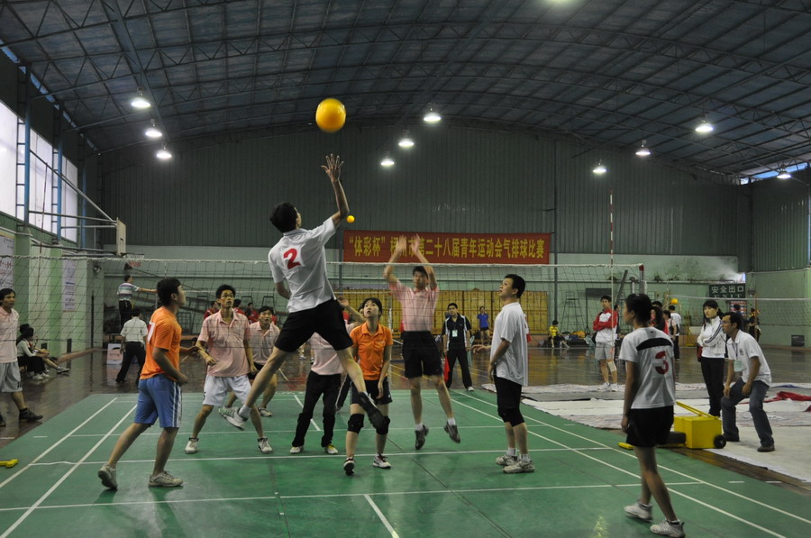 春田隊(近端)2號主攻手空中動作十分舒展? 黃能 攝