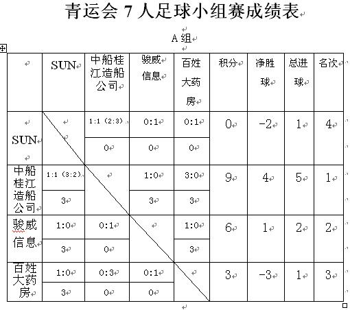 青運(yùn)會(huì)7人足球小組賽成績(jī)表