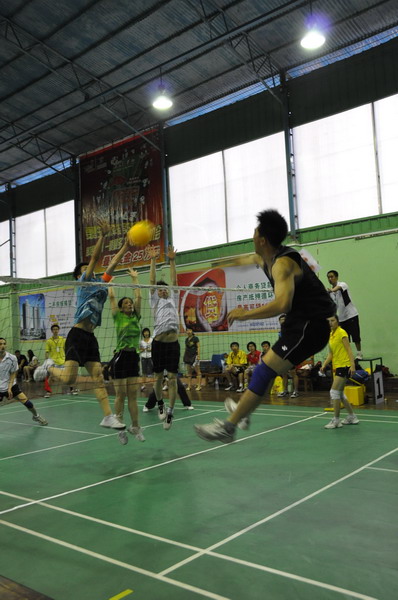 永通型隊黃偉雄(黑)一記重扣遭遇夢想隊3人攔網? 黃能 攝