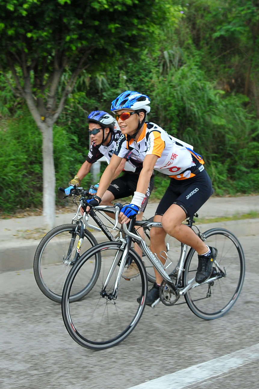 兩為選手在自行車項(xiàng)目比賽中并駕齊驅(qū)。何鎏 攝
