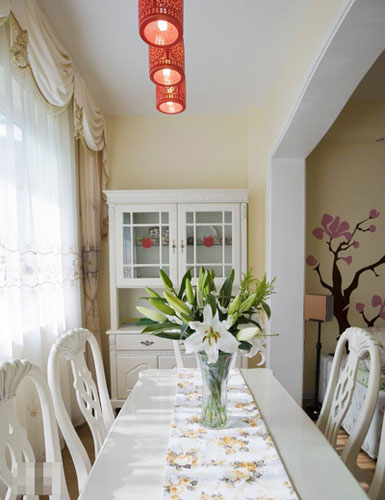 餐廳的位置不是緊臨著廚房,而是設在了客廳接近窗戶采光極好的一側。