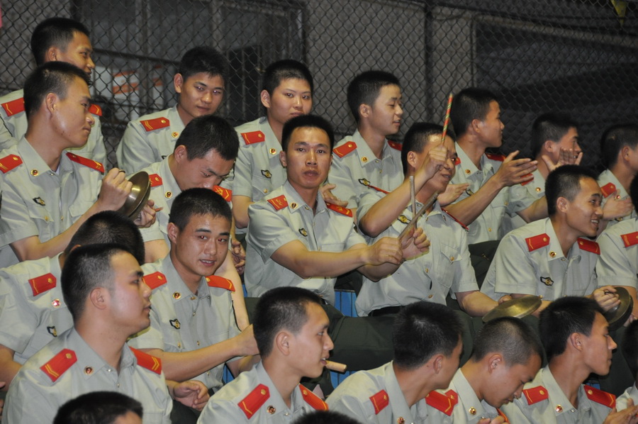 子弟兵敲鑼打鼓為比賽吶喊助威