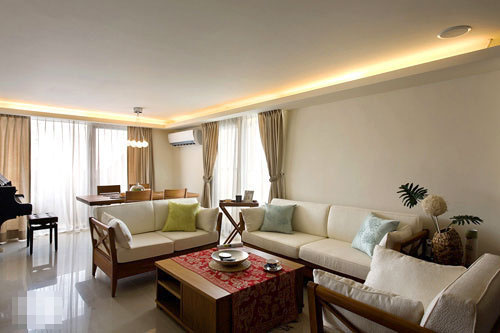 將原本餐廳隔間墻打掉,將餐廳與客廳區域做結合,機能性共享同時場域的視角關系更加開闊。