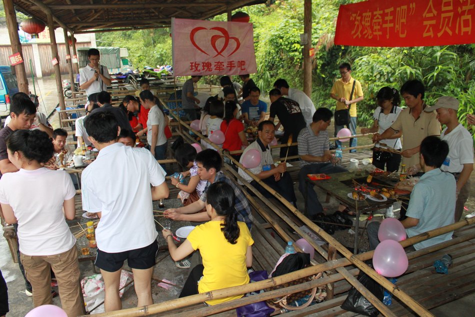在生火時,男會員們充分顯示出紳士風度,負責生火工作,女會員則充當“賢內助”的角色,在旁邊穿雞翅膀、牛肉。在企業工作小李子邊接過女會員遞來的玉米邊說:“正所謂“男女搭配干活不累”啊,你看我們多默契,你們羨慕嗎?”坐在他旁邊的女生接著回了一句“就她跟你默契啊,那我呢?”男會員小賴把一個烤熟的雞翅遞給了一個遲來的美女說:“不要客氣,我為美女效勞是應該的。”美女欣然接過雞翅,還主動坐到小賴旁邊和他聊天。