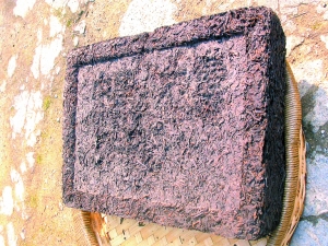 上世紀八十年代六堡鎮的茶廠所生產的茶餅。由于當時主要出口,壓的是“中國六堡”字樣。雖歷經二十多年,茶餅上的字尚依稀可見。