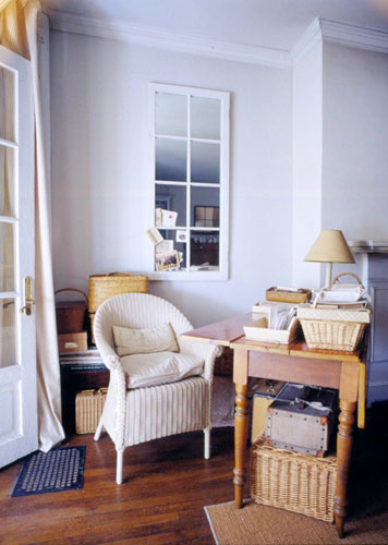 起居室一角里素雅的鄉村風格的小辦公區,天然材質的家具,迎合整體風格的收納盒將物品收納其中,讓空間井然有序。