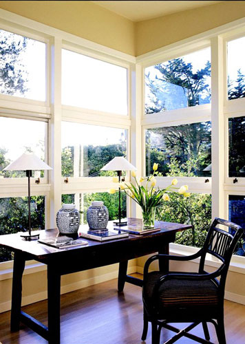 這個家庭辦公室位于大廚房內的一端,運用與廚房操作臺相同的工作臺面作為書桌。其實,有時候我們無需把廚房與毗鄰的房間完全隔離開來,尤其是當兩個空間的風格和功能相似時。