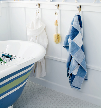 將出游時從海邊撿來的海星、貝殼擺放在浴室,洗澡馬上有了幾分游泳的感覺