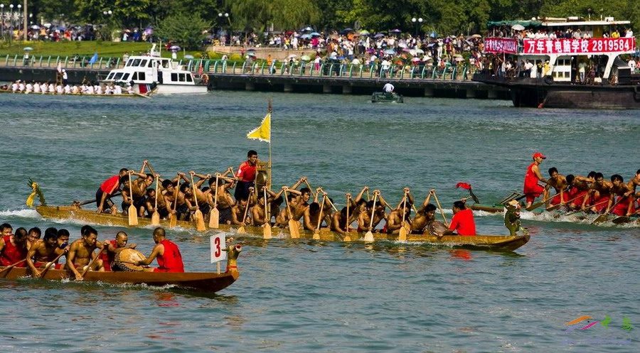????端午節賽龍舟端午節賽龍舟是我國一項歷史悠久的水上競技活動.椐<事物原始.端陽>記載:賽龍舟"起于越王勾踐".聞一多先生考證:古代吳越民為表示他們"龍子"的身份,籍以鞏固自身的被保護權,所以有斷發紋身的習俗.在每年的五月初五劃著刻畫成龍形的獨木舟,在水上作競渡的游戲,給圖騰神,也給自己取樂.每到端午時節,尤其是在南國水鄉,都有龍舟竟渡的盛會,它富有蓬勃向上的競技精神.在泊羅江畔,每年端午都隆重舉行竟渡儀式.人們穿著新裝,扶老攜幼,先到屈子廟朝拜,還抬著龍頭祭廟;祭畢才開始龍舟竟渡.是時,群龍一齊下水,一聲炮響,船似箭發,兩岸歡呼,鞭炮齊鳴,真是熱鬧非凡!