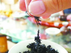 這出自梧州六堡鎮不依村的茶品居然是絮狀,茶干品呈鐵銹紅色,看似輕飄飄的,放在手上掂量卻沉甸甸,拋幾下,居然可以成團———