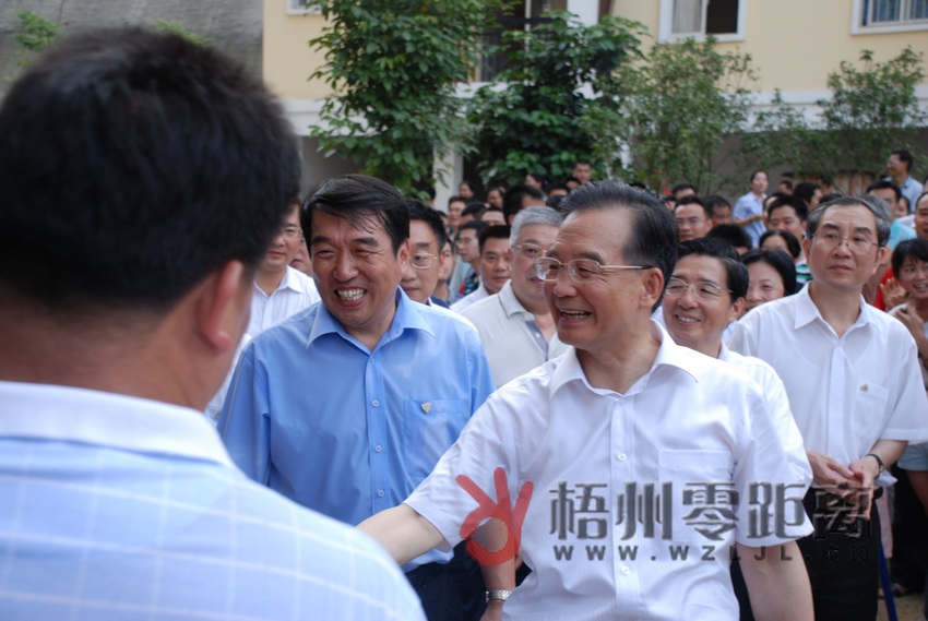 在富民廉租房小區,溫總理走到人群中,與群眾親切握手。謝學勤 攝
