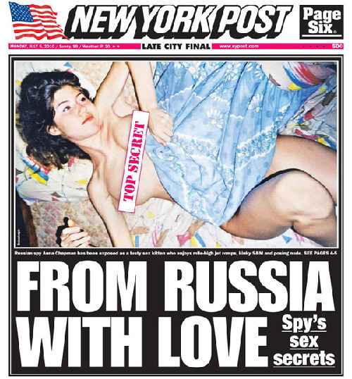 2010年7月5日,美國《紐約郵報》用安娜·查普曼的艷照做頭版。