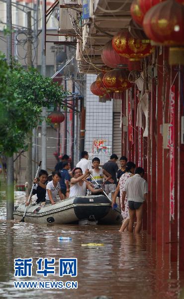 ??? 7月18日,重慶市潼南縣山邊村,居民以橡皮船作為出行工具。當日,重慶潼南縣和瓊江上游普降大到暴雨,最大降雨量超過160毫米,致使瓊江水位猛漲,造成潼南全縣22個鎮鄉(街)遭受不同程度災害損失。過境洪災和強降雨共造成全縣9.6萬人受災,緊急轉移1.6萬人。新華社記者 陳誠 攝 |