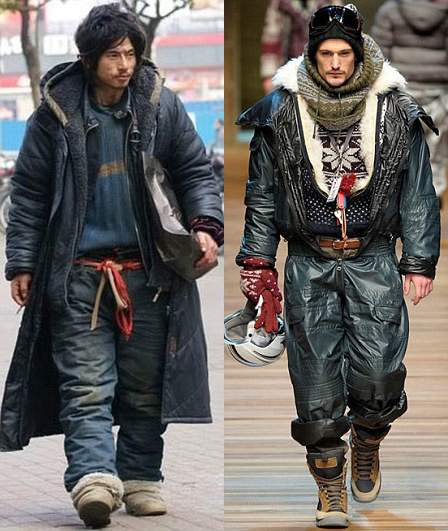 犀利哥波西米亞風格的造型(左圖)給時裝設計師帶來了靈感(右圖)。